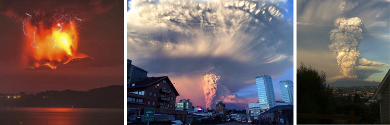 La columna de humo y cenizas de 17 kilómetros de altura (mayor incluso que la producida el mes pasado en el volcán Villarrica) fue claramente visible desde Puerto Varas, Puerto Montt y Puerto Octay. Las tres comunas quedaron bajo toque de queda entre las 23:45 horas del miércoles y las 05:00 horas del jueves. Un segundo episodio eruptivo se produjo cerca de la 1 de la mañana.
