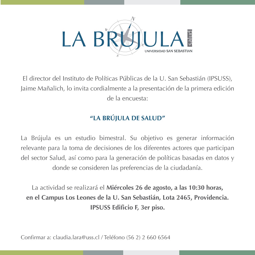 A partir de mañana miércoles, y cada dos meses, 'La Brújula Salud' de la U. San Sebastián, dará a conocer indicadores y un estado de percepción pública de este ámbito de la vida nacional.